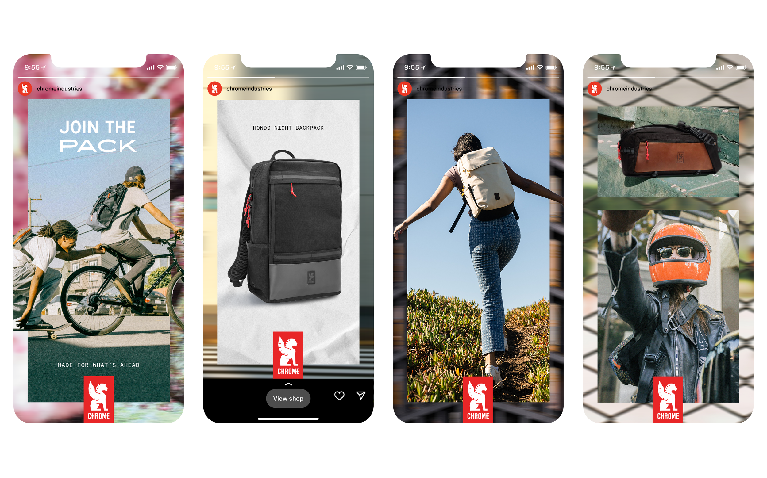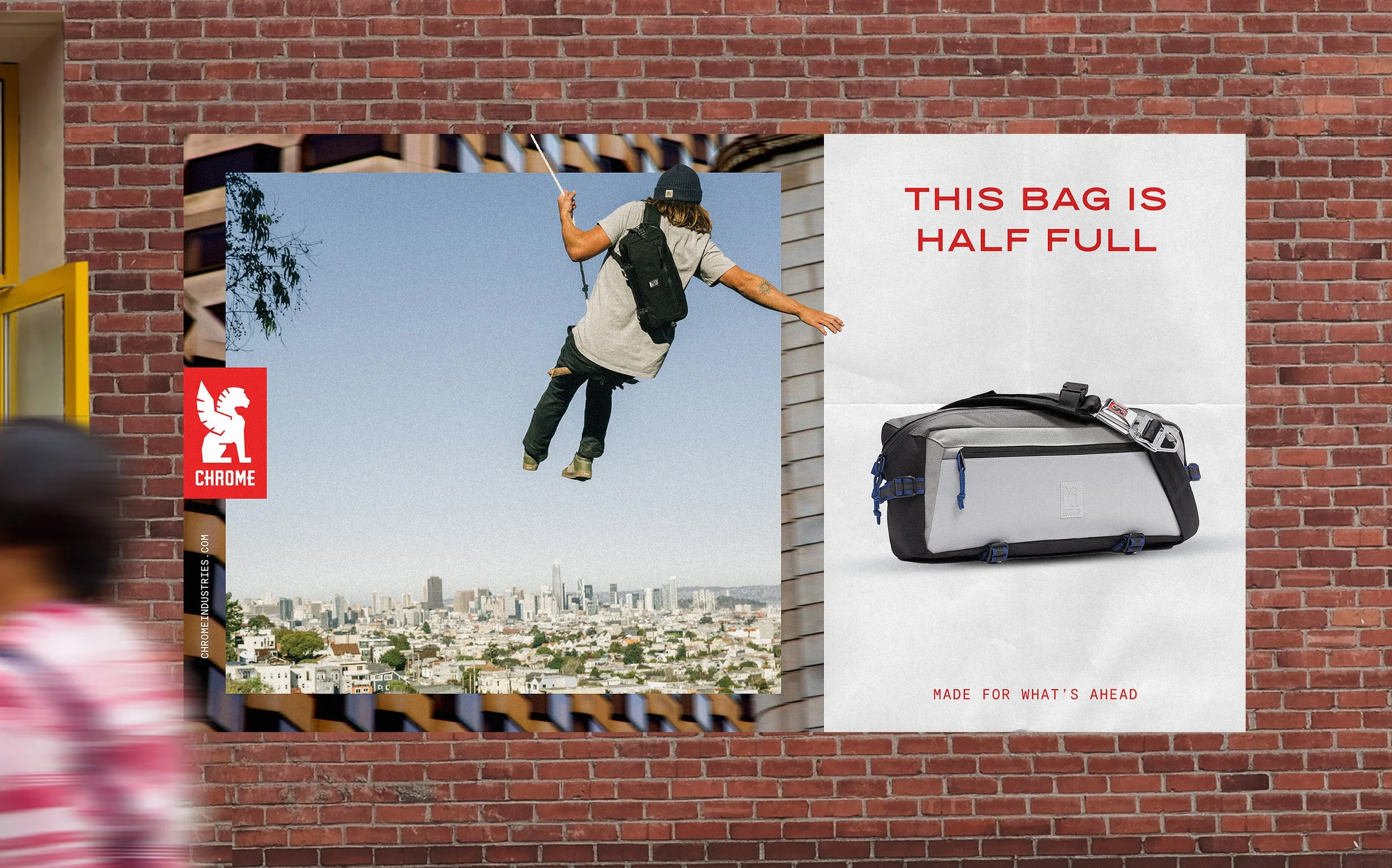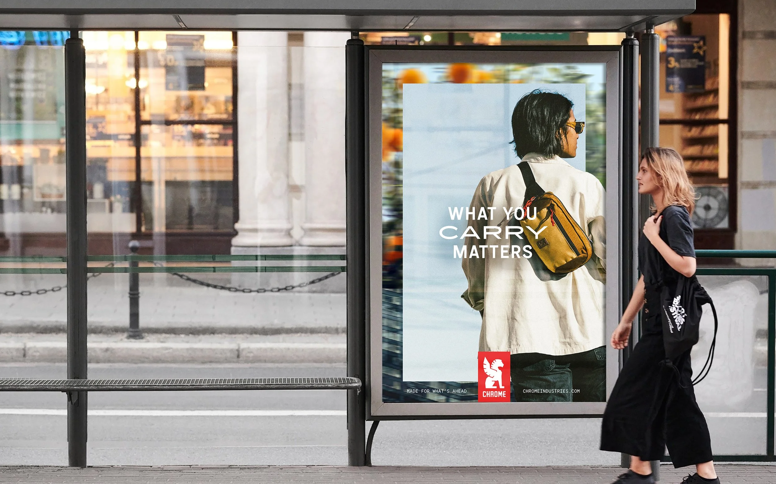 Chrome Industries has always been the solution for hardworking bike messengers, but we set out to elevate the brand in culture by reflecting the bigger shared identity of its community. Living at the intersection of movement and creative self-expression, it was time for the brand and its visual identity to reflect this progression. We were inspired by the energy of the city to stay in motion and carried this theme throughout our design system — from color to photography to typography. We created a brand world that appealed to a wider audience while staying true to their heritage.